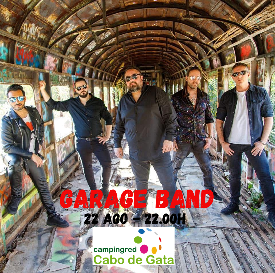Este 22 de agosto a las 22:00 h el escenario del Camping Cabo de Gata se llena de música y energía con la banda Garage Band.