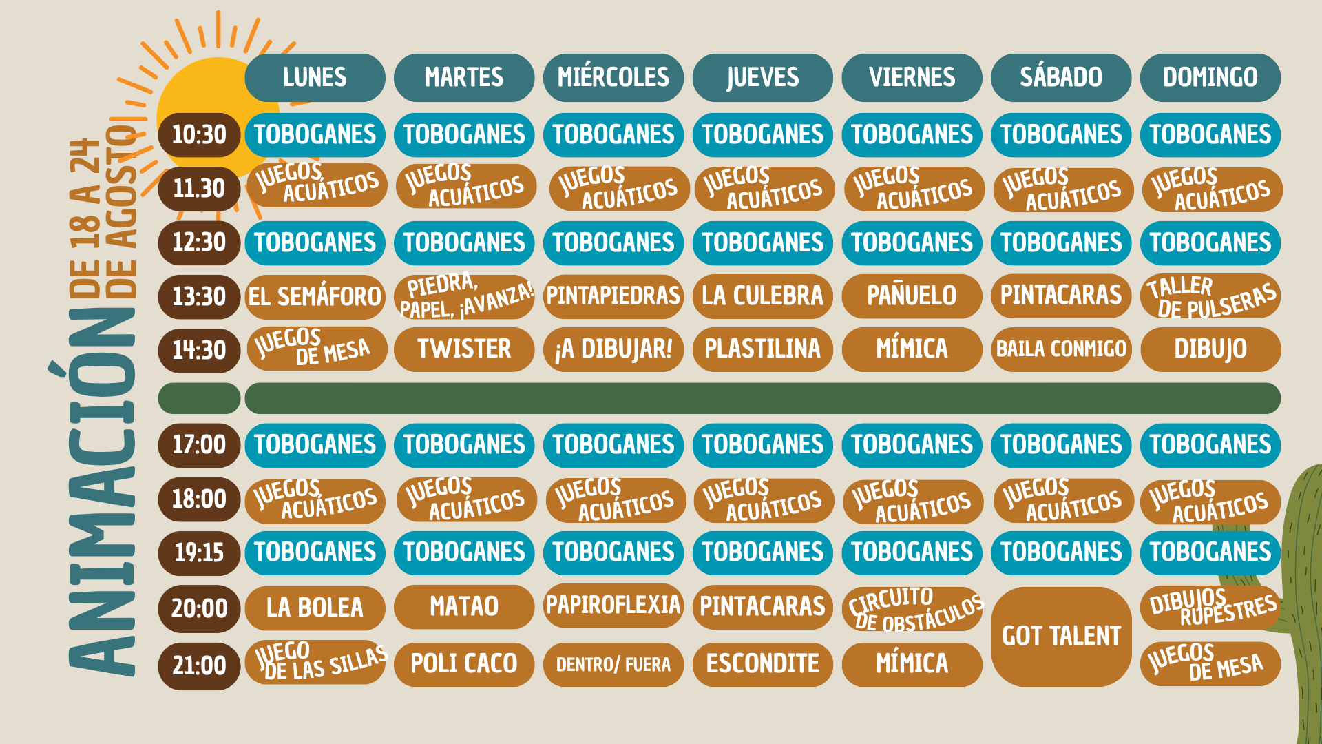 Aquí encontrarás nuestro programa de animación, pensado para que cada día en Camping Cabo de Gata sea diferente y emocionante. Juegos, talleres y actividades para compartir con la familia y nuevos amigos.